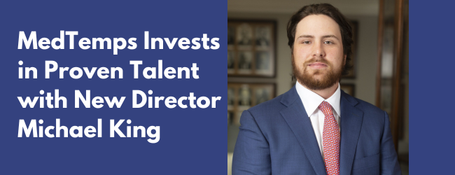 “My plan is to stay with MedTemps for a long time,” said Michael. “I’m hooked on the rush that comes from connecting a candidate to a job that suits them perfectly. In my mind, every example of our success, and I’ve already seen so many, strengthens MedTemps’ brand, and our reputation.