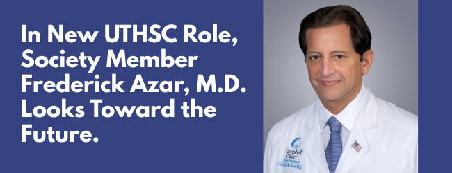 Frederick M. Azar, MD, a longtime Memphis orthopaedic surgeon specializing in sports medicine and a Memphis Medical Society member, has been named the new Harold Boyd Chair of the UT Health Science Center-Campbell Clinic Department of Orthopaedic Surgery and Biomedical Engineering in the College of Medicine at the University of Tennessee Health Science Center.